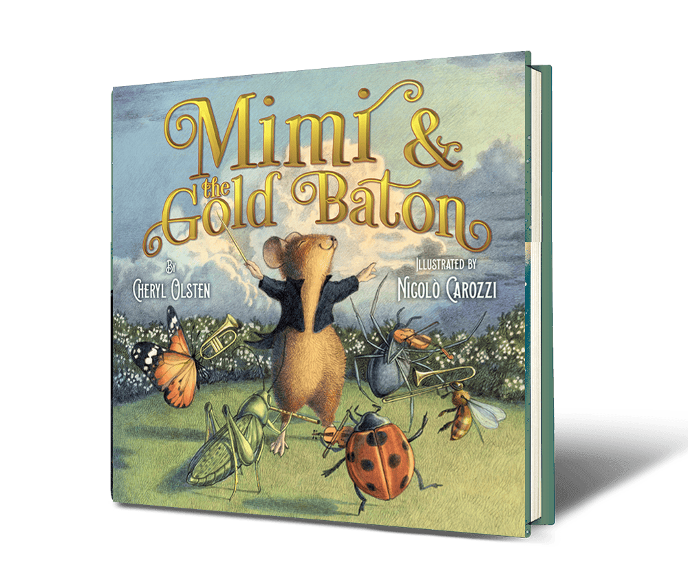 “There are a lot of children’s books about reaching for your dreams, but Mimi and the Gold Baton is one that stands out for several reasons. The story is unique – a little mouse making her way through a small town in Italy, with a dream of becoming a “mousetro” is adorable and creative. The author, Cheryl Olsten, does an excellent job of showing that it isn’t always easy following one’s dreams, as Mimi has to take some risks, and at times, feels very alone and even a bit unsure. Readers will, however, discover that the rewards of “going for it” are well worth it, as Mimi makes great friends and finds happiness and joy when her dream is achieved. Another fabulous element, the artwork by Nicolò Carozzi, is simply stunning. Mimi is adorable, with details such as her little blue jacket adding so much. Mimi, and other creatures’ expressions, perfectly reflect how they feel (Mister Caterpillar was my favorite!). No children’s tale would be complete without a little bit of magic, and there’s a nice little dose here (how does Mimi’s breadstick baton become a gold baton?). Finally, the tale concludes with an orchestra with a wide variety of animal, and bug, musicians, as well as music enthusiasts, clearly showing the beauty in a diverse group of new friends coming together to enjoy the simple pleasures of friendship and beautiful music, led by the first girl mousetro! Bravo, Cheryl Olsten and Nicolò Carozzi – together you brought a little mouse to life and showed children what can happen when you never give up and reach for your dreams.